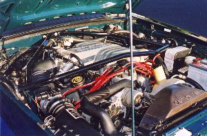 The engine bay, after some detailing and the addition of the Kenny Brown strut tower to fire wall brace.